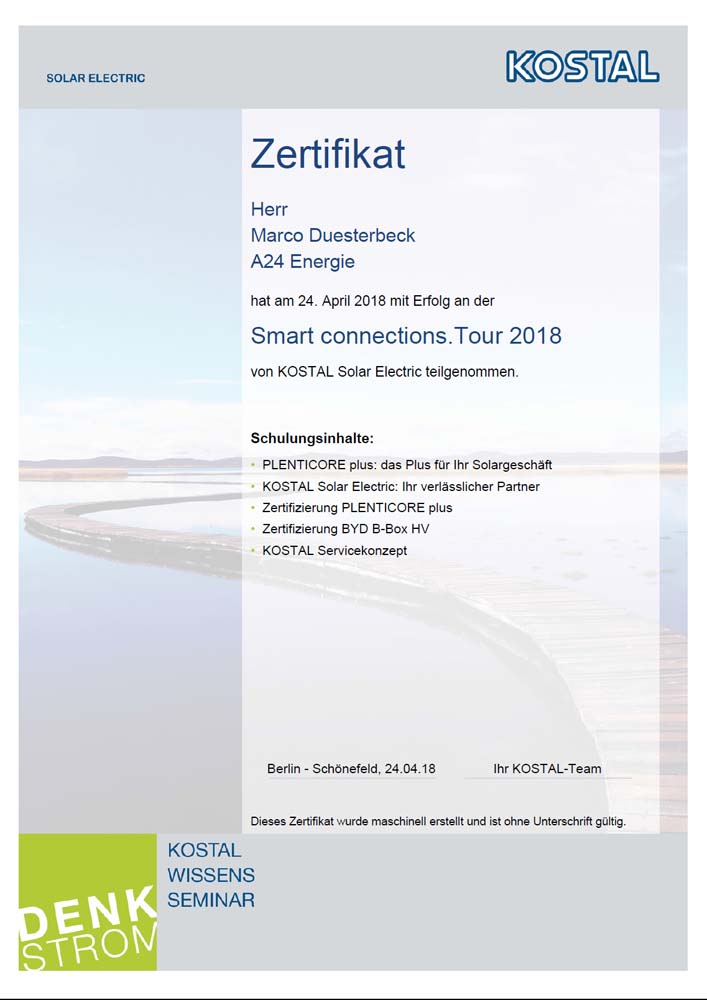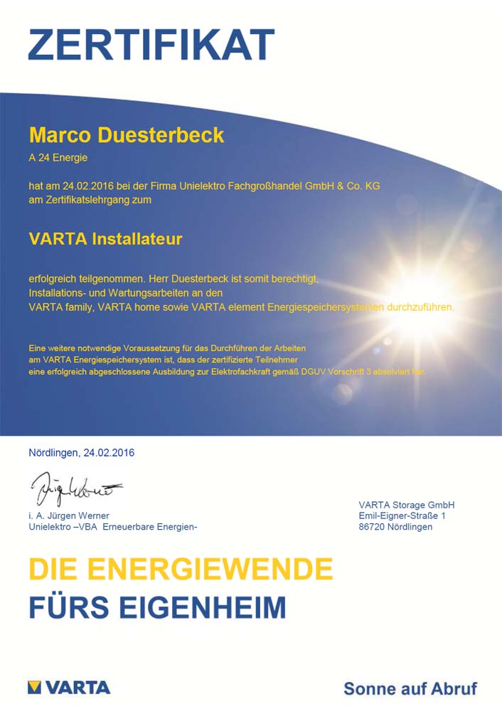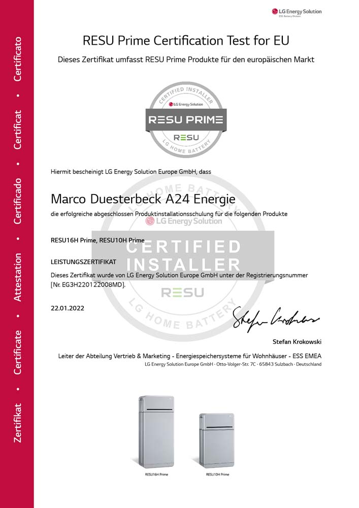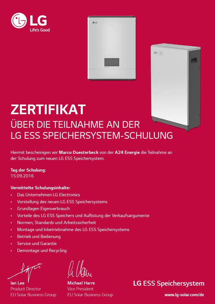 Die A24 Energie behält sich das Recht vor, jederzeit Konstruktionsänderungen an den Batteriesystemen vorzunehmen, ist jedoch nicht verpflichtet, derartige Änderungen auch an den bereits ausgelieferten Produkten vorzunehmen.