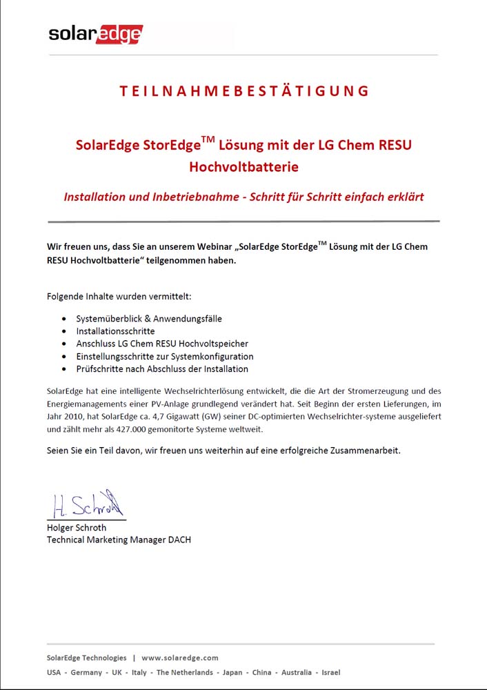 12.4 Die Leistungs- und Produktgarantien der verwendeten Komponenten (PV-Module, Wechselrichter und des Batteriesystems) werden ausschließlich von deren Herstellern gewährt. Daher sind Ansprüche aus diesen Garantien direkt gegen den Hersteller zu richten.